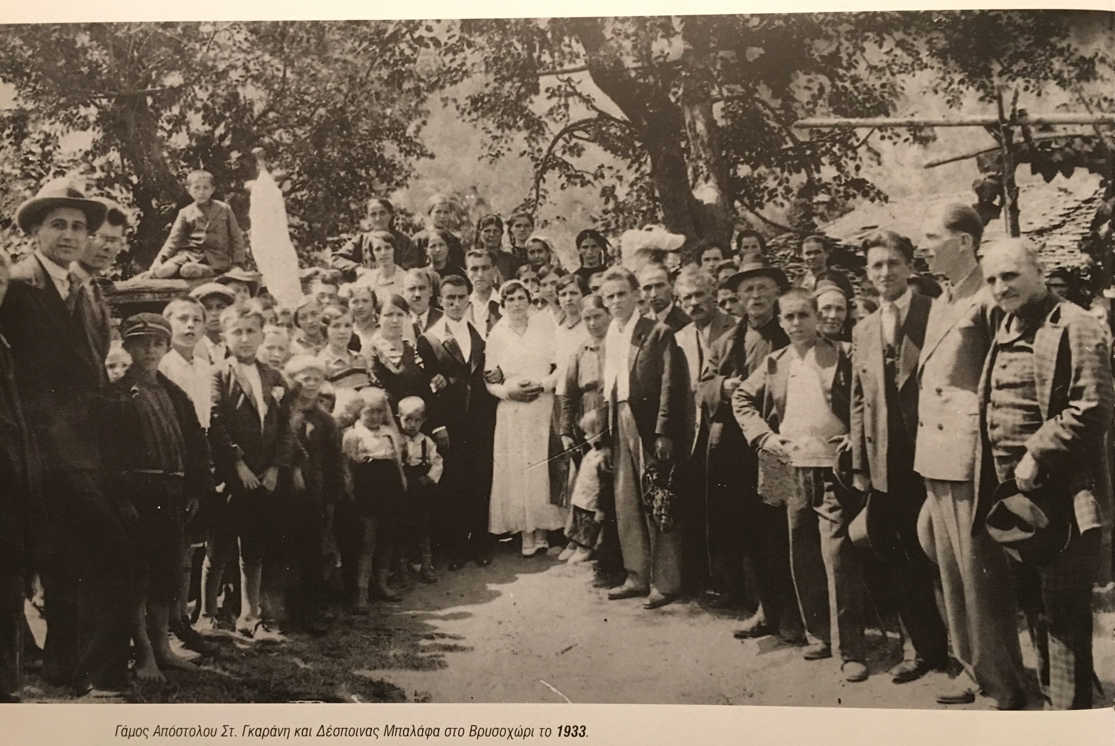 Γάμος Απόστολου Στ. Γκαράνη και Δέσποινας Μπαλάφα στο Βρυσοχώρι το 1933. — Πηγή Α, σελίδα 210.