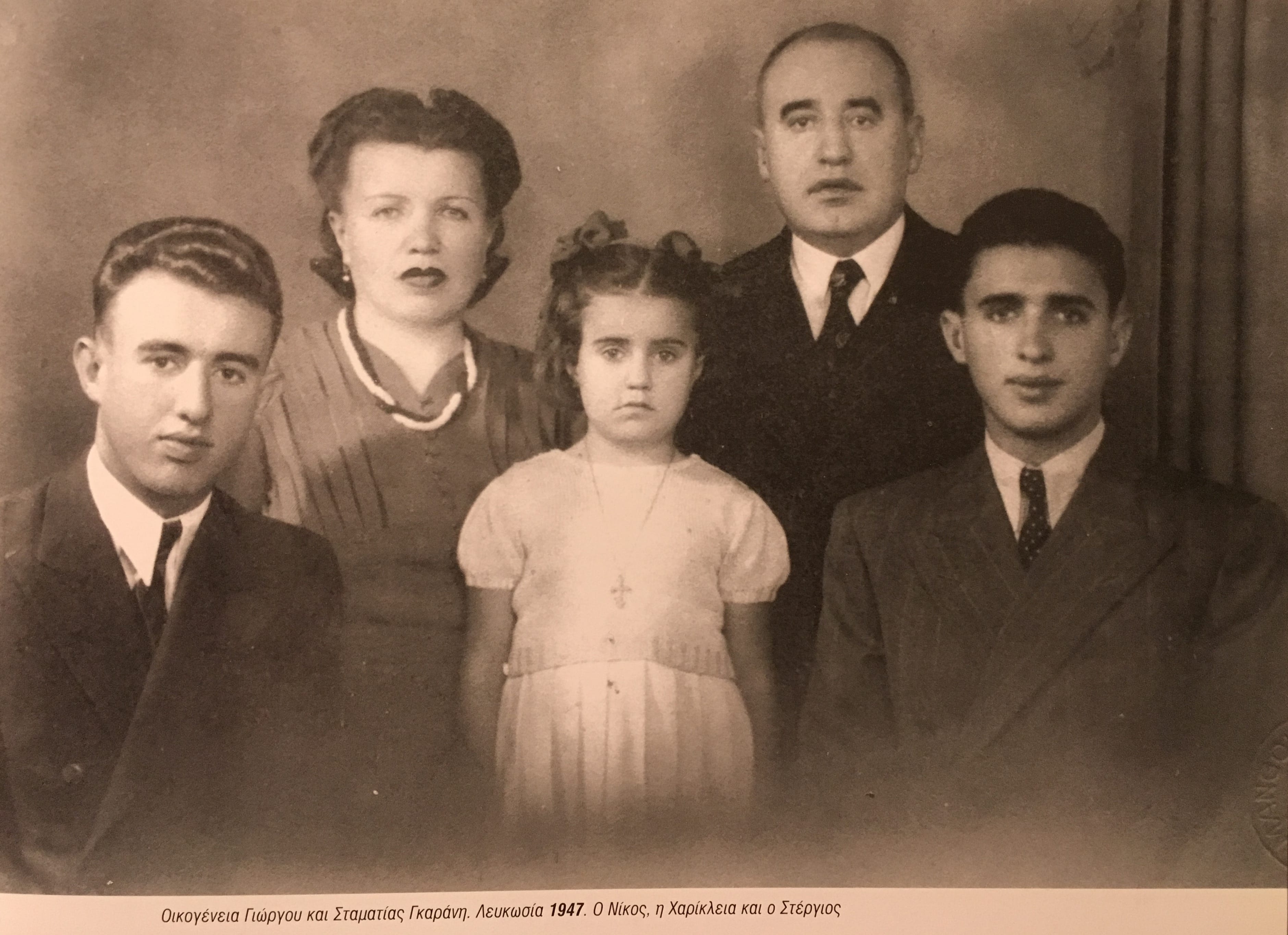 Οικογένεια Γιώργιου και Σταματίας Γκαράνη. Λευκωσία 1947. Ο Νίκος, η Χαρίκλεια και ο Στέργιος. — Πηγή Α, σελίδα 117.