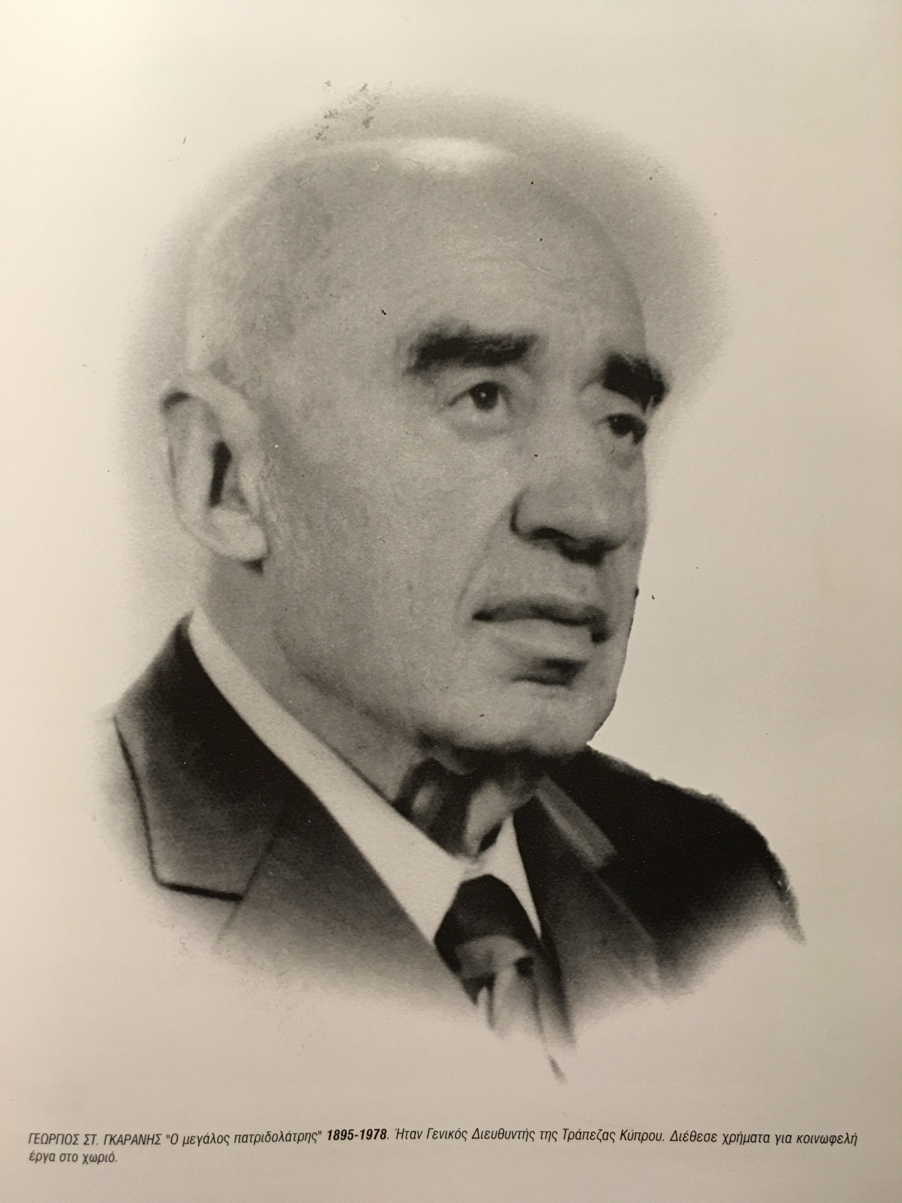 ΓΕΩΡΓΙΟΣ ΣΤ. ΓΚΑΡΑΝΗΣ “Ο μεγάλος πατριδολάτρης” 1895–1978. Ήταν Γενικός Διευθυντής της Τράπεζας Κύπρου. Διέθεσε χρήματα για κοινωφελή έργα στο χωριό. — Πηγή A, σελίδα 37.