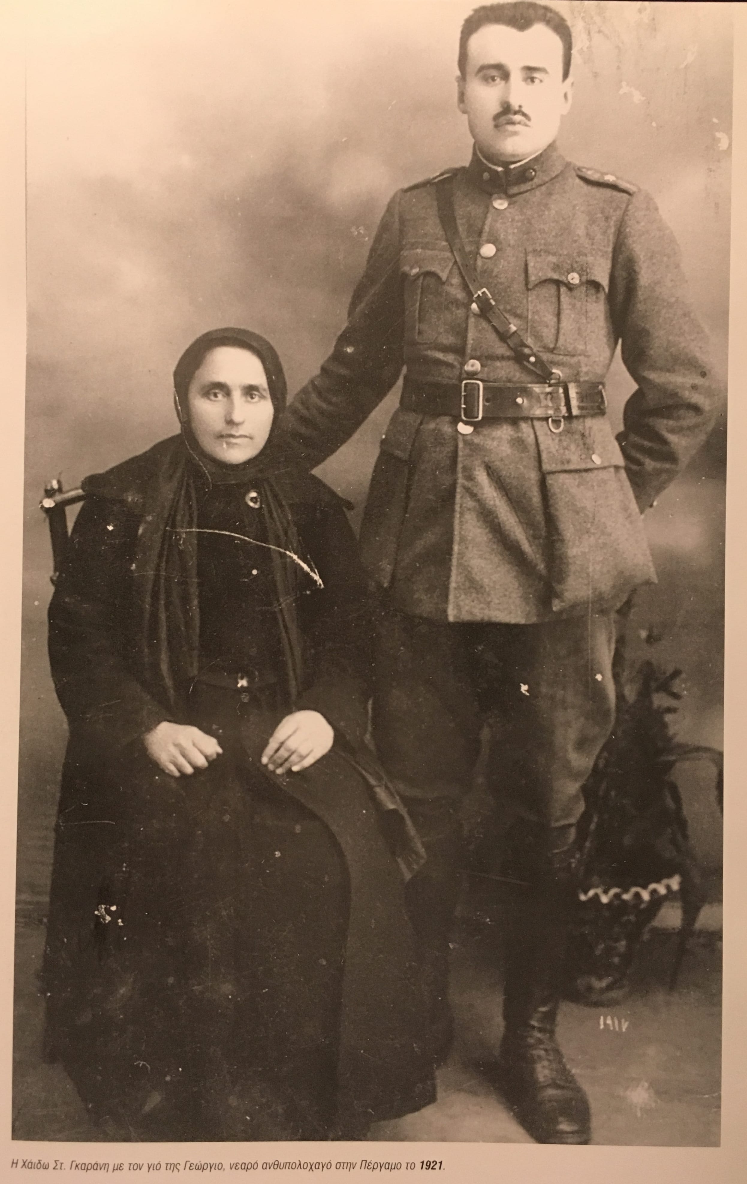 Η Χάιδω Στ. Γκαράνη με τον γιό της Γεώργιο, νεαρό ανθυπολοχαγό στην Πέργαμο το 1921. — Πηγή Α, σελίδα 77.